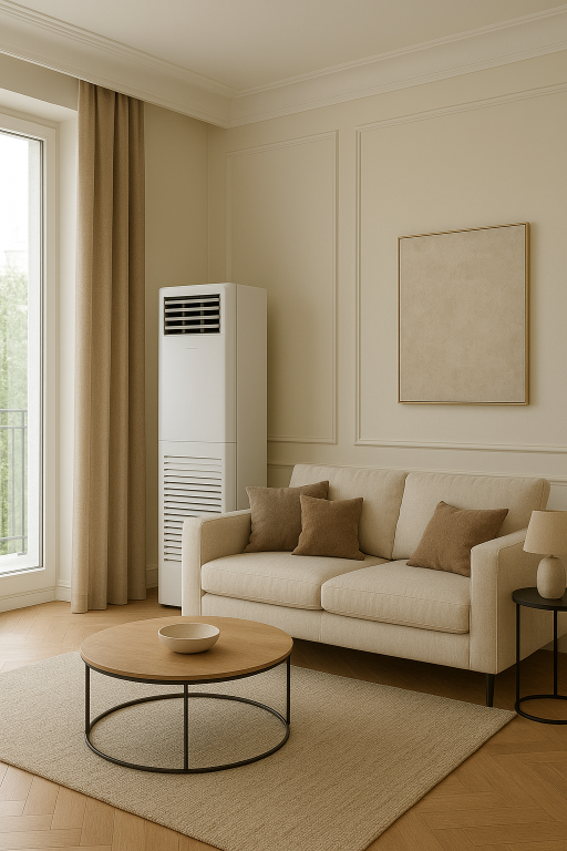 Floor Standing type units are placed directly on the ground, making them suitable for large living rooms, halls, or areas without suitable wall space.